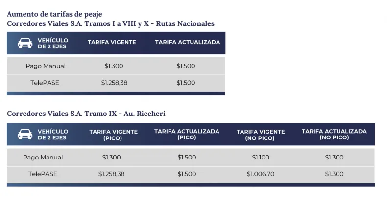 Además del impacto en el puente interprovincial y en Makallé, las tarifas actualizadas alcanzan a estaciones de peaje ubicadas en corredores estratégicos como la autopista Riccheri, Ezeiza-Cañuelas, Buenos Aires–Rosario y Rosario–Córdoba, así como distintos tramos de las rutas nacionales 3, 5, 7, 8, 9, 12 y 205, entre otras.