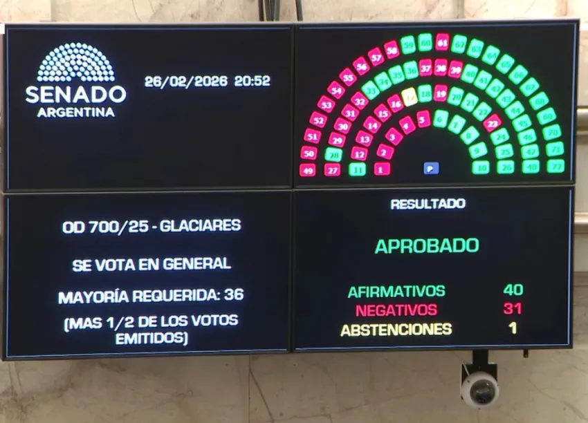 Aun así, con 40 votos a favor, 31 en contra y una sola abstención, la Cámara Alta dio luz verde al proyecto que propone, como cambio central, delegar la definición de los estándares de protección en zonas glaciares y periglaciares.