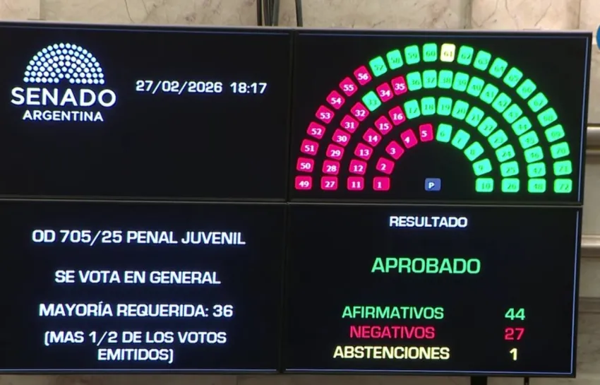 Luego de más de seis horas de debate, el Senado de la Nación aprobó la baja de edad de imputabilidad a 14 años y se convirtió en ley. Con 44 votos a favor, 27 en contra y unja sola abstención, el gobierno nacional logró aprobar una de las leyes que se propuso para este año.