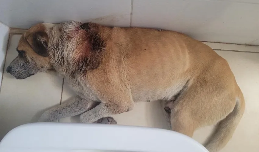 Piden tránsito urgente para un perro que está herido y fue abandonado por trapitos