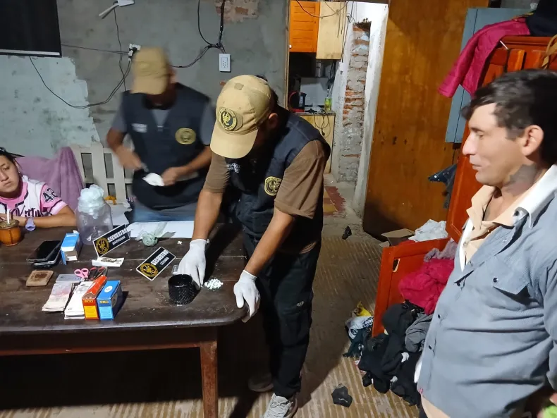 Durante el procedimiento secuestraron 11,8 gramos de cocaína y 33,7 gramos de marihuana, fraccionados en distintos envoltorios, además de elementos utilizados para el corte y distribución, un teléfono celular y 56.100 pesos en efectivo.