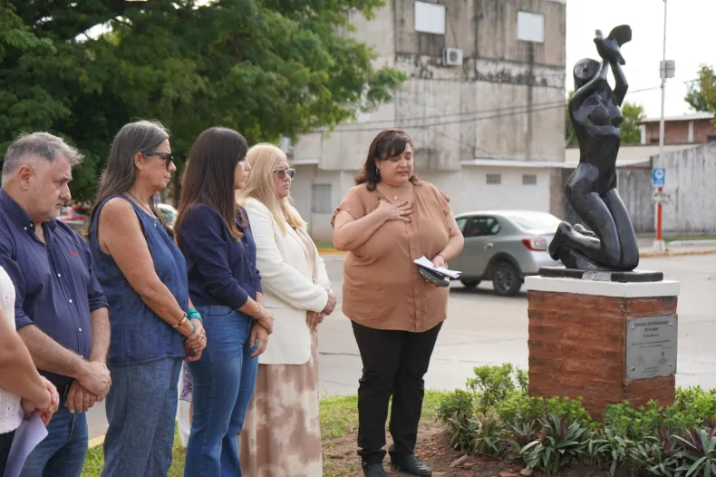 La actividad se realizó frente a la escultura ubicada en la intersección de las avenidas Vélez Sarsfield y Laprida, un espacio donado por la Comisión Provincial Multisectorial de la Mujer como homenaje permanente a las víctimas. Durante el encuentro se descubrió una placa conmemorativa para recordar a las mujeres que perdieron la vida a causa de la violencia, en un sitio que busca simbolizar memoria, reflexión y compromiso colectivo.