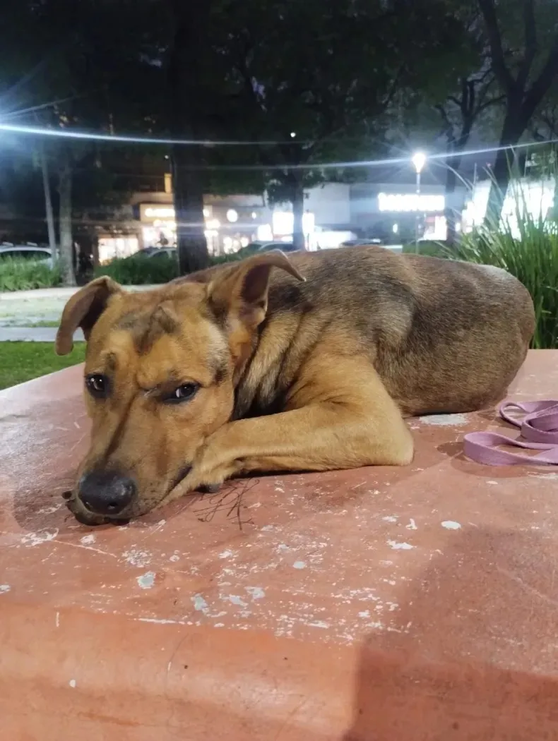 De acuerdo al relato, Ángeles adoptó hace un tiempo a Mayo, un perrito rescatado que desde entonces la acompaña en su vida cotidiana.