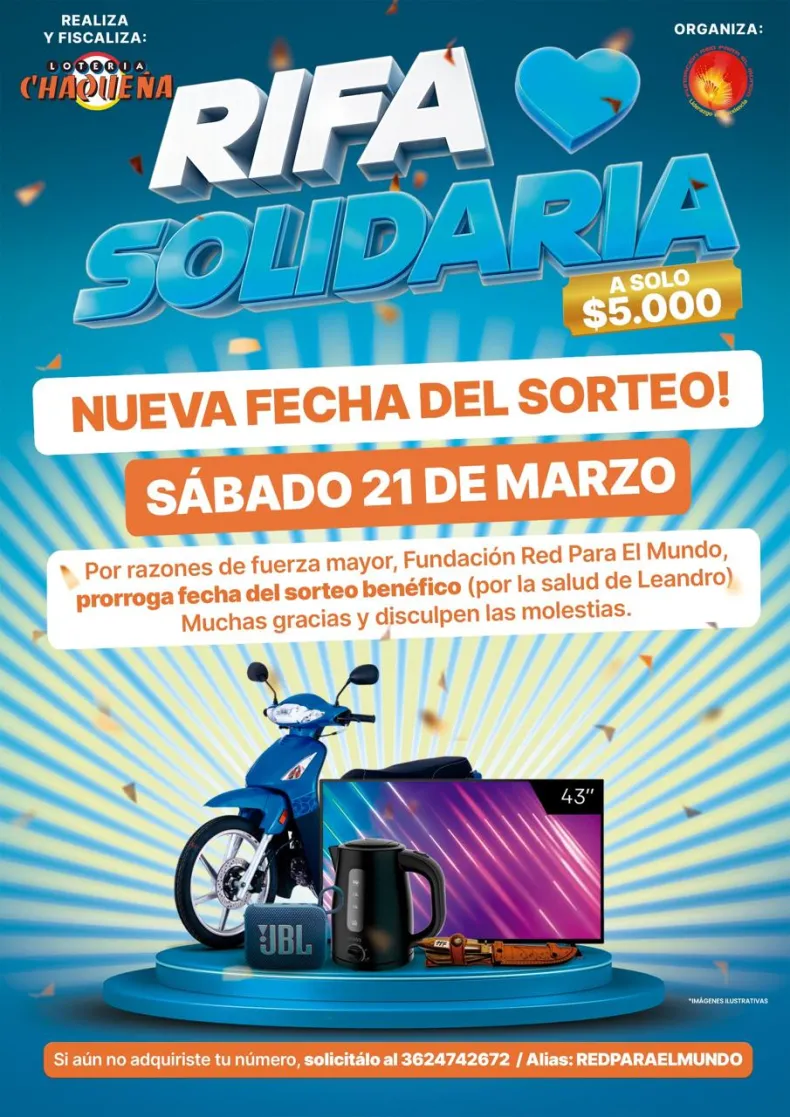 La rifa tiene un valor de 5.000 pesos y será sorteada el próximo 21 de marzo de 2026, bajo fiscalización de Lotería Chaqueña. Desde la organización aclararon que es necesario vender la totalidad de los números para poder entregar los cinco premios.