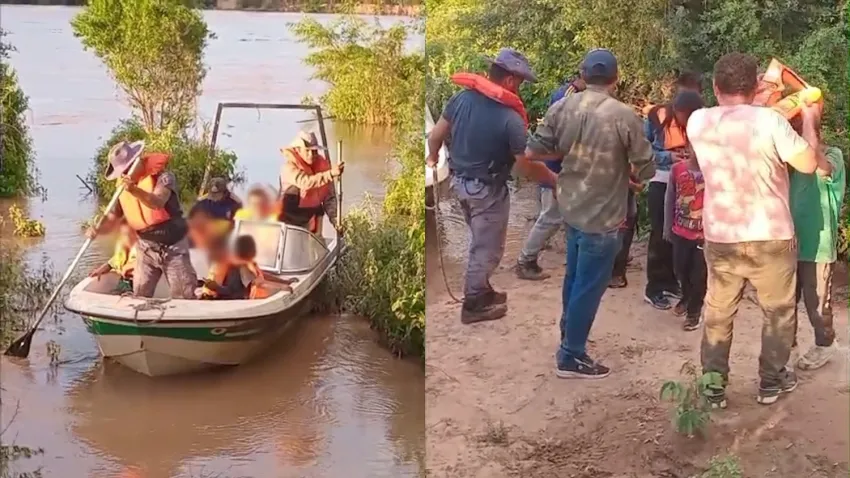 Según detalló el Intendente, el traslado se realiza habitualmente en una embarcación precaria conocida como "chalana". Sin embargo, debido al importante caudal de agua que presenta el río en esta jornada, el cruce se volvió sumamente peligroso para los niños.