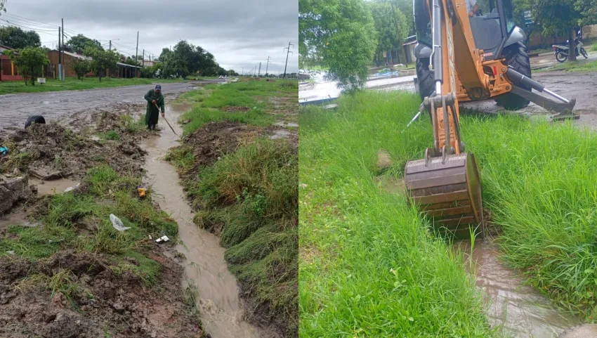 También se realizan intervenciones en avenidas como Marconi, Soberanía Nacional, Urquiza, Las Heras y Quijano, donde se trabaja con retroexcavadoras para optimizar el escurrimiento.