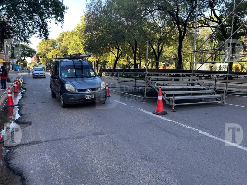 Esto se debe a que se está armando un escenario frente a la Casa por la Memoria donde se realizará el cierre de la marcha convocada para las 18 horas en avenida San Martin y 9 de Julio.