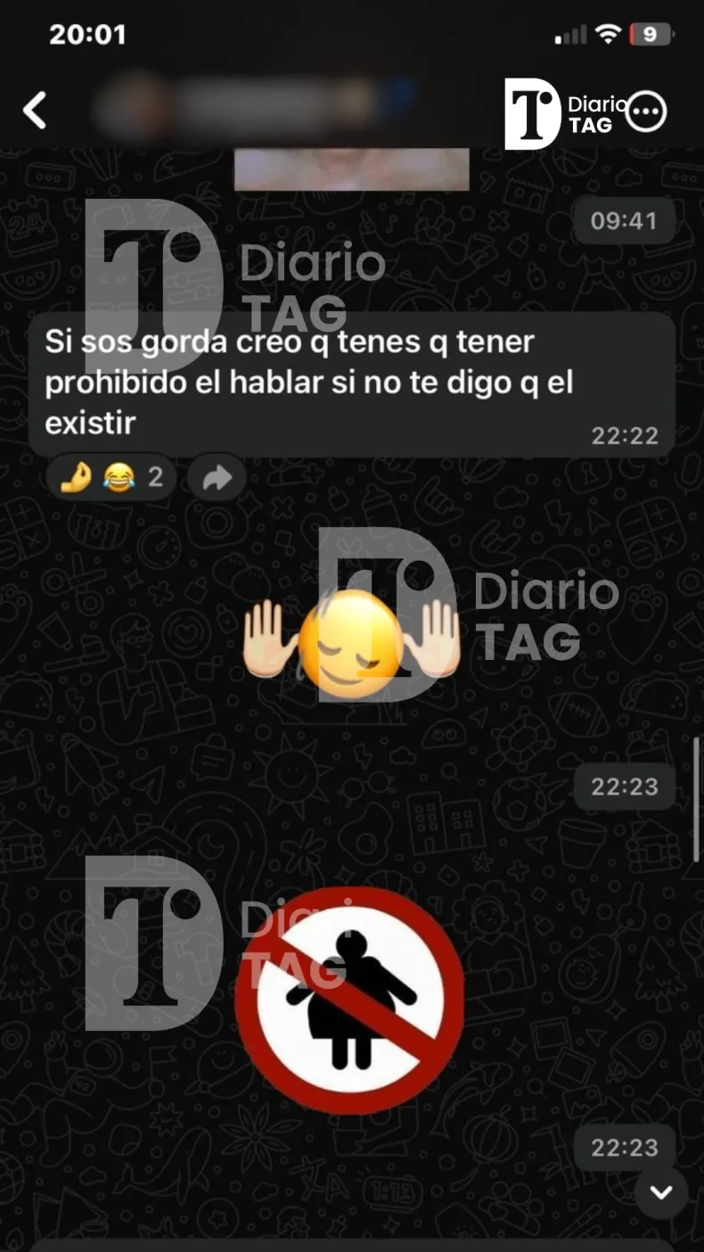 "Si sos gorda creo que tenés que tener prohibido hablar, si no te digo que tenés prohibido existir", dice uno de los mensajes que, de acuerdo a los familiares, se enviaban en un canal de la aplicación de mensajería.