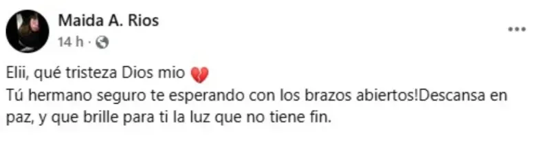 Las publicaciones reflejaron el fuerte impacto que causó su partida, con palabras que resaltan tanto su vida personal como el momento que atravesaba. "QEPD Eli, que Dios ilumine siempre la vida de tu reina, que esperabas con muchas ansias", escribió una usuaria, en referencia a la llegada de su hija.