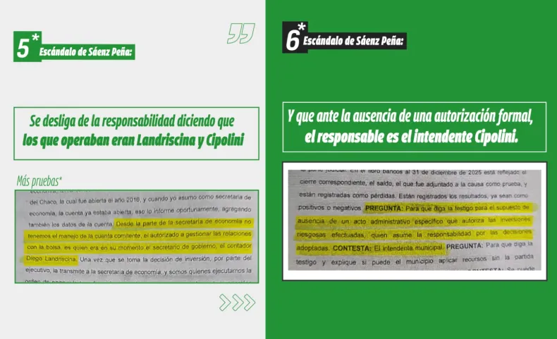 El diputado del Frente Chaqueño, Santiago Pérez Pons, quien se presentó como querellante en la causa, sostuvo que "la declaración confirma que las decisiones no eran técnicas sino políticas, y que la responsabilidad recae en el Ejecutivo municipal".