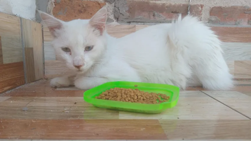 Según cuenta Anna, "Lucio" es "un gato macho albino, con un potencial a ser peludo en el futuro, tiene ocho meses de edad. Es super mimoso, dócil, sabe usar piedritas, es tranquilo y se lleva bien con animales pequeños", describió.