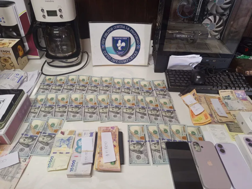 Hallaron allí $ 606.000 pesos, y u$d 2.900, que la propietaria no pudo justificar su procedencia, además una motocicleta eléctrica marca Lito, monopatín eléctrico marca Black Power, teléfono celular marca Iphone 17 Pro, teléfono celular marca Samsung A17, un auricular Airpods Apple, una PC Gamer con todos sus componentes, pantalla Samsung, teclado, auriculares y mouse, un televisor marca Samsung de 55", tablet lenovo modelo M11, cafetera marca Mandine, y un sobre con facturas de compras y tickets con mes de enero, febrero y marzo. Todo fue secuestrado ya que la fiscalía estableció que estos elementos estaban vinculados al hurto del dinero.