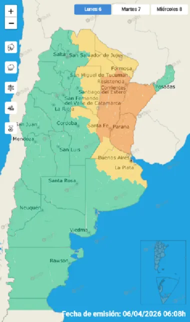 Este lunes el Servicio Meteorológico Nacional mantiene vigente alerta naranja por intensas precipitaciones en gran parte de la región Noreste. La mitad de la provincia estará afectada por esta condición, mientras el resto del territorio se encuentra bajo alerta amarilla.