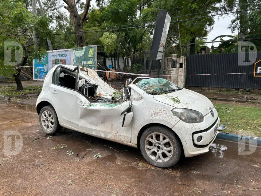 Según se informó, el ejemplar, que se encontraba dentro del predio del Cecupo, se desplomó sobre un automóvil Volkswagen Up! que estaba estacionado en el exterior. En su caída, además, arrastró cables del tendido eléctrico.