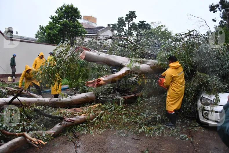 Con el correr de las horas, personal trabajó en el lugar para cortar el árbol y retirar cables, aunque aún permanece señalizado con cinta de peligro en la vereda. Pasadas las 11:30, continuaban las tareas para normalizar la situación.