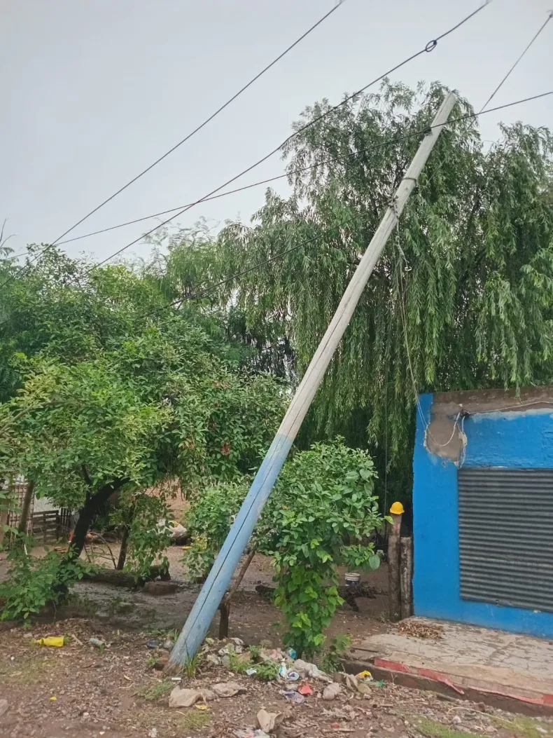 Hasta el mediodía, cayeron en Resistencia 80 mm de precipitaciones que fueron acompañadas por intensa actividad eléctrica y ráfagas de viento. Las consecuencias del temporal se vieron en distintos puntos de la ciudad, entre ellos en el barrio Don Bosco. En el lugar, vecinos expresaron su preocupación por un poste que fue empujado por el viento y está a punto de caer por completo.