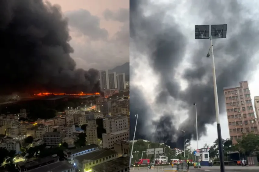 Impactante incendio en un estacionamiento de autos eléctricos en Shenzhen
