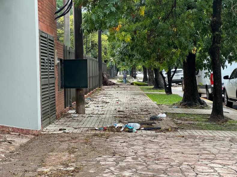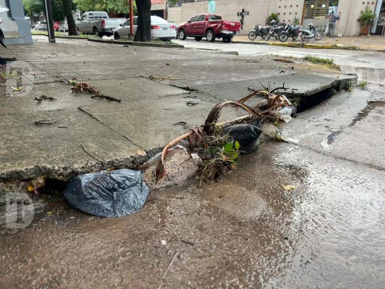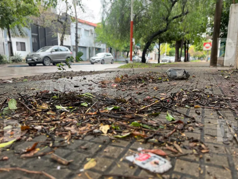 El relevamiento también permitió observar acumulación de ramas, hojas y residuos que dificultaban el normal escurrimiento del agua en bocas de tormenta, una situación que vecinos señalaron como recurrente tras lluvias intensas.