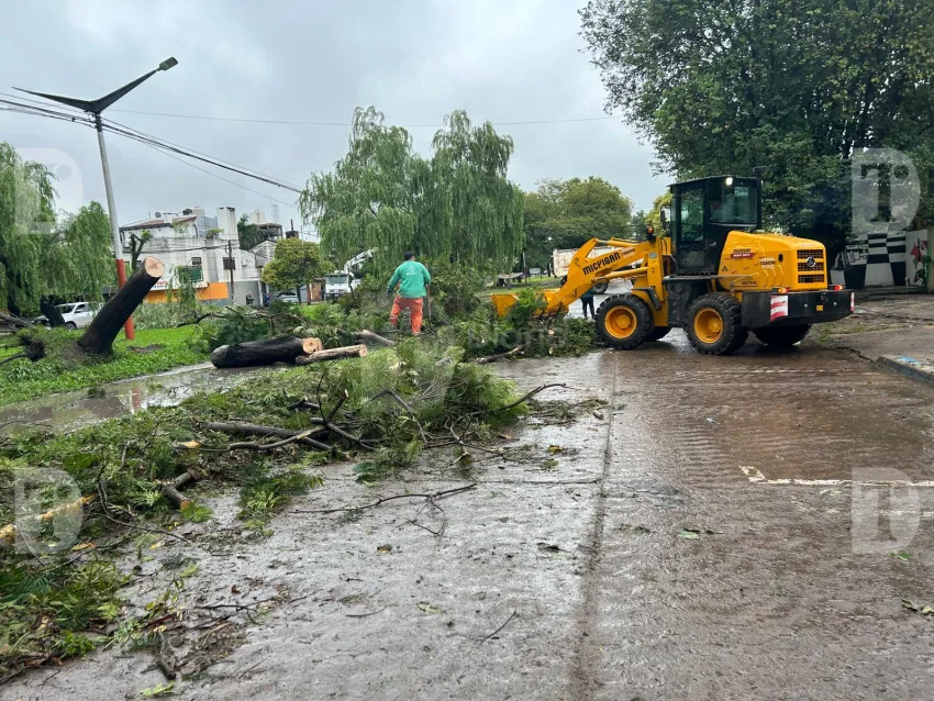 Trabajadores municipales indicaron que las tareas comenzaron alrededor de las 6:30 de la mañana y que la jornada se presentaba "pesada" por la cantidad de intervenciones derivadas del temporal.