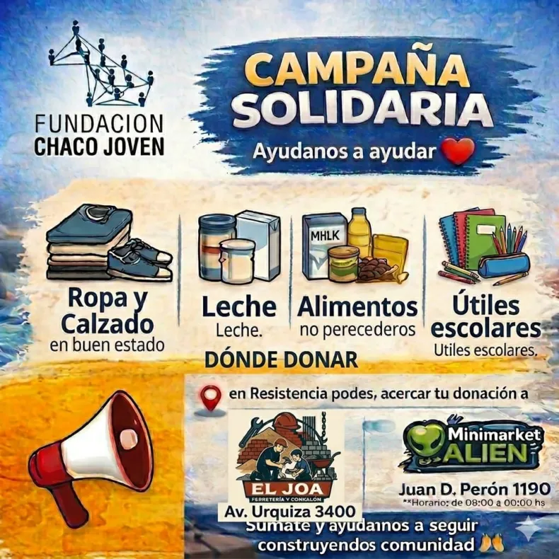 La campaña es impulsada por la Fundación Chaco Joven, una organización que trabaja desde hace años en distintas localidades de la provincia con iniciativas sociales basadas en el voluntariado y la ayuda comunitaria.