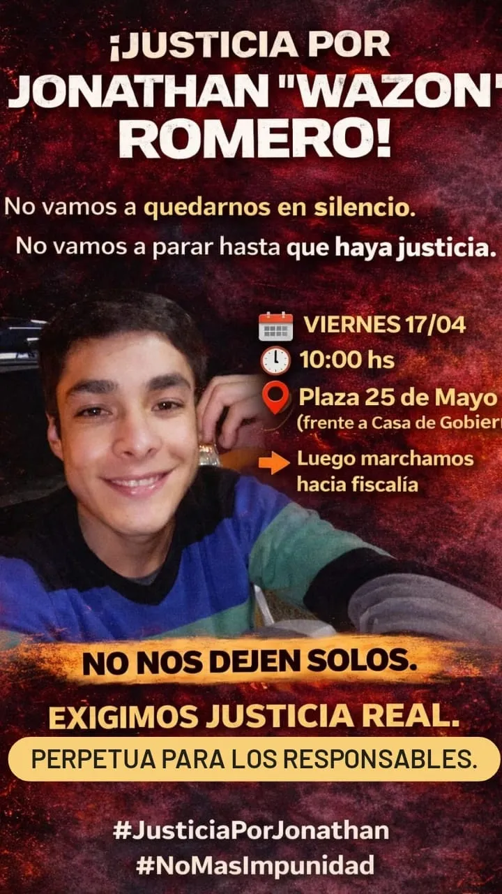 Mientras avanza la investigación judicial, el entorno de la víctima busca visibilizar el caso y exigir condenas ejemplares. "La marcha por mi negro Jonathan Romero a pedir justicia… Perpetua para los asesinos", publicó su esposa en redes sociales, invitando a la comunidad a acompañar el reclamo.