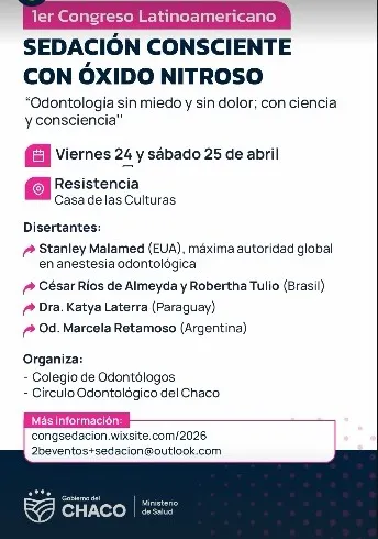 En paralelo, también la provincia será sede del Primer Congreso Latinoamericano de Sedación Consciente con Óxido Nitroso, que se desarrollará el próximo 24 y 25 de abril en la Casa de las Culturas bajo el lema "Odontología sin miedo y sin dolor. Con ciencia y conciencia". El evento reunirá a especialistas de nivel internacional y marcará un precedente en la región.