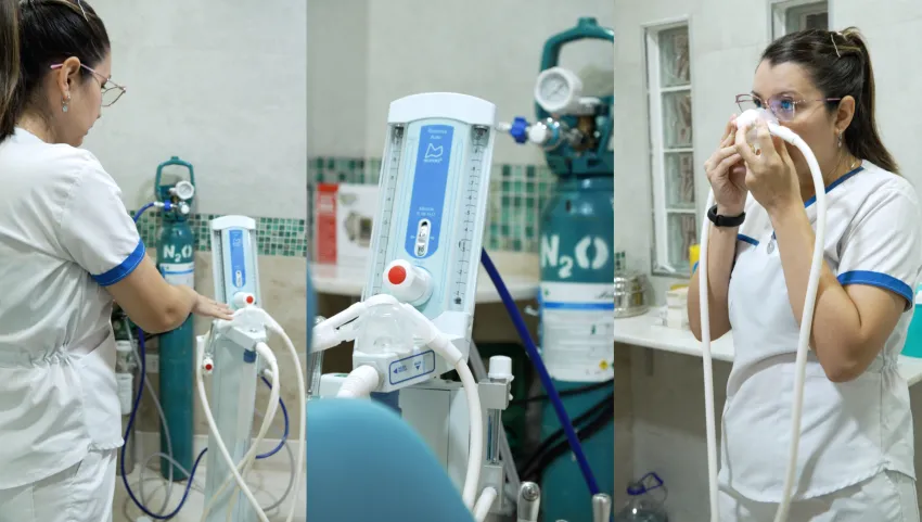 El proceso es gradual: se inicia con oxígeno puro y, de manera progresiva, se incorpora el óxido nitroso en pequeñas concentraciones, ajustadas según cada paciente. Durante todo el procedimiento se controlan los signos vitales, presión arterial, frecuencia cardíaca y saturación de oxígeno, para garantizar la seguridad.