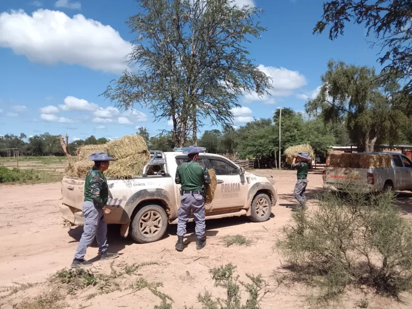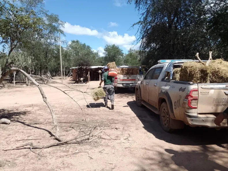 Este viernes, agentes de la Policía del Chaco concretaron la entrega de alimento para animales y acompañaron a pobladores de la zona. En total, visitaron nueve parajes rurales de la localidad de Comandancia Frías, afectados por la creciente del Río Bermejo.