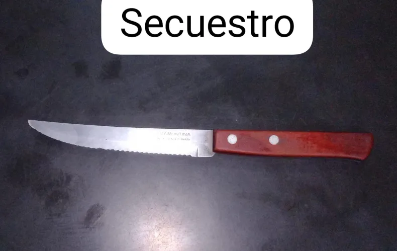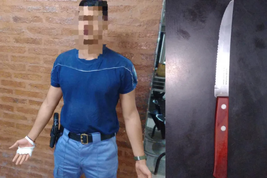 Metros más adelante, al ser alcanzado, el hombre extrajo un arma blanca e intentó agredir a un efectivo policial, quien logró reducirlo tras un forcejeo, resultando con una lesión en su mano derecha.