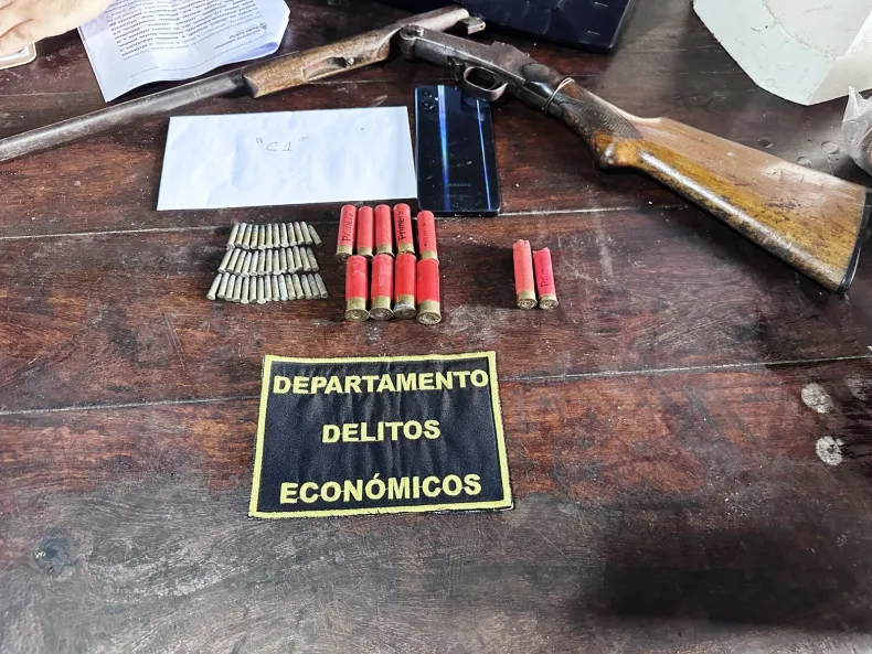 Además, en uno de los domicilios, junto a la evidencia por juego ilegal, se procedió al secuestro de una escopeta marca Safari calibre 28 y más de 50 cartuchos de distintos calibres (.28, .14, .16 y .22).