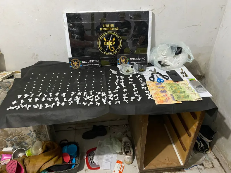 También incautaron elementos utilizados para el fraccionamiento y comercialización de la droga, como recortes, una balanza digital de precisión y dos tijeras. A esto se suma el secuestro de un teléfono celular iPhone, $ 8.700 en efectivo y municiones: cinco cartuchos calibre .32 y dos calibre 9 mm.