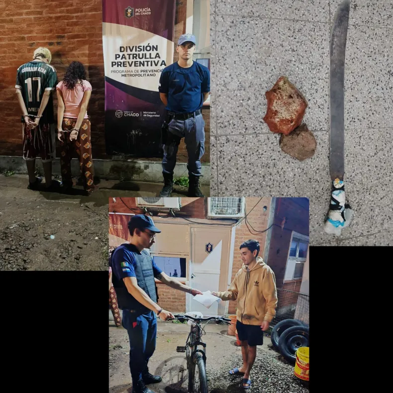 Finalmente, los efectivos lograron secuestrar la bicicleta recuperada, un machete y trozos de ladrillo utilizados en la agresión. Además, se registraron dos patrulleros que sufrieron daños en el parabrisas y en una de sus puertas.