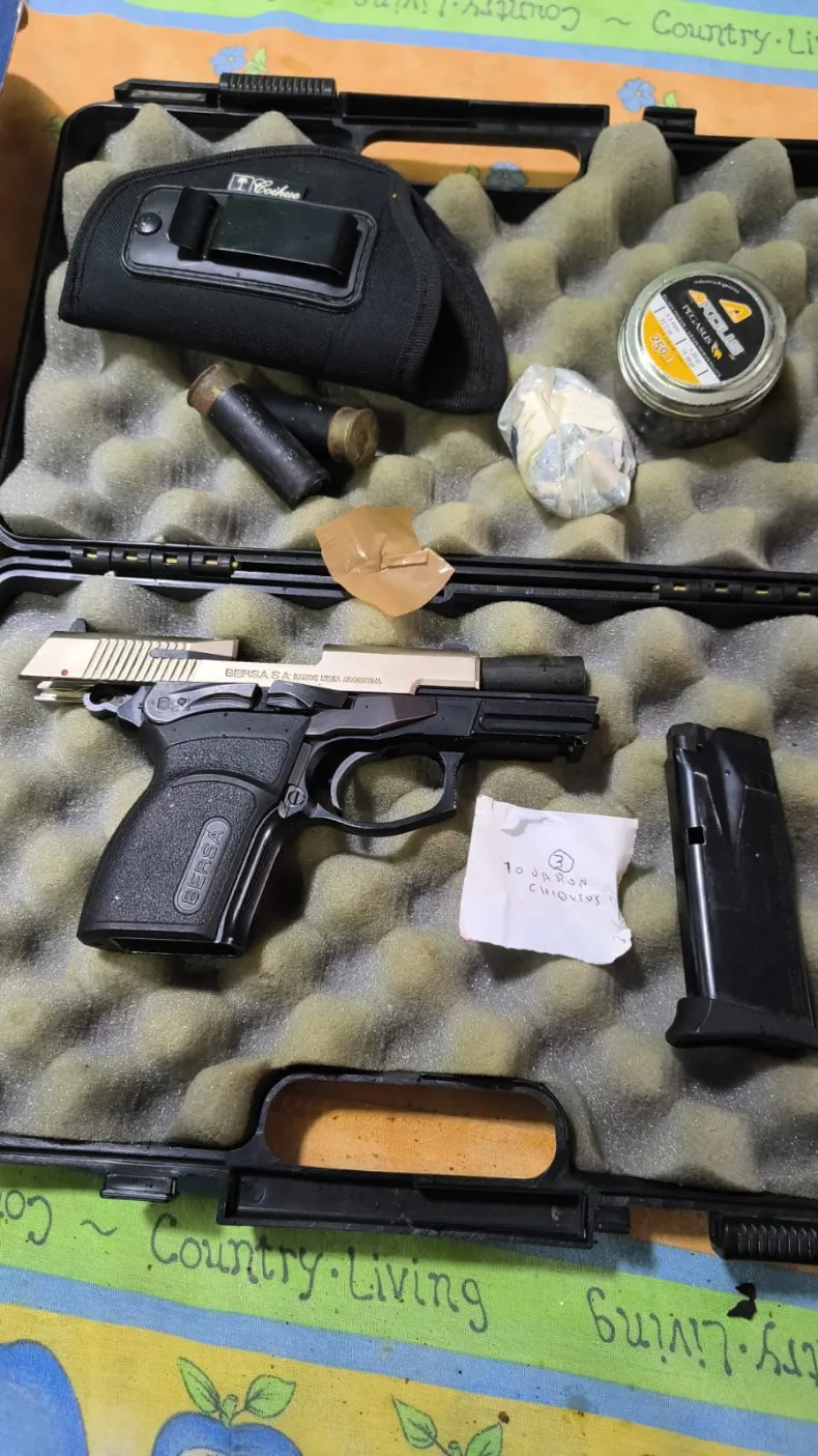 El procedimiento tuvo lugar en una vivienda ubicada sobre calle Santa Cruz; de allí los agentes secuestraron: una pistola calibre 45 con cargador y cartuchos, un revólver calibre 22, escopetas de distintos calibres, rifles, carabinas, pistolones y tres armas de aire comprimido modificadas. Además, incautaron más de 60 cartuchos de diversos calibres, balines, estuches, pistoleras, dos teléfonos celulares y una notebook.