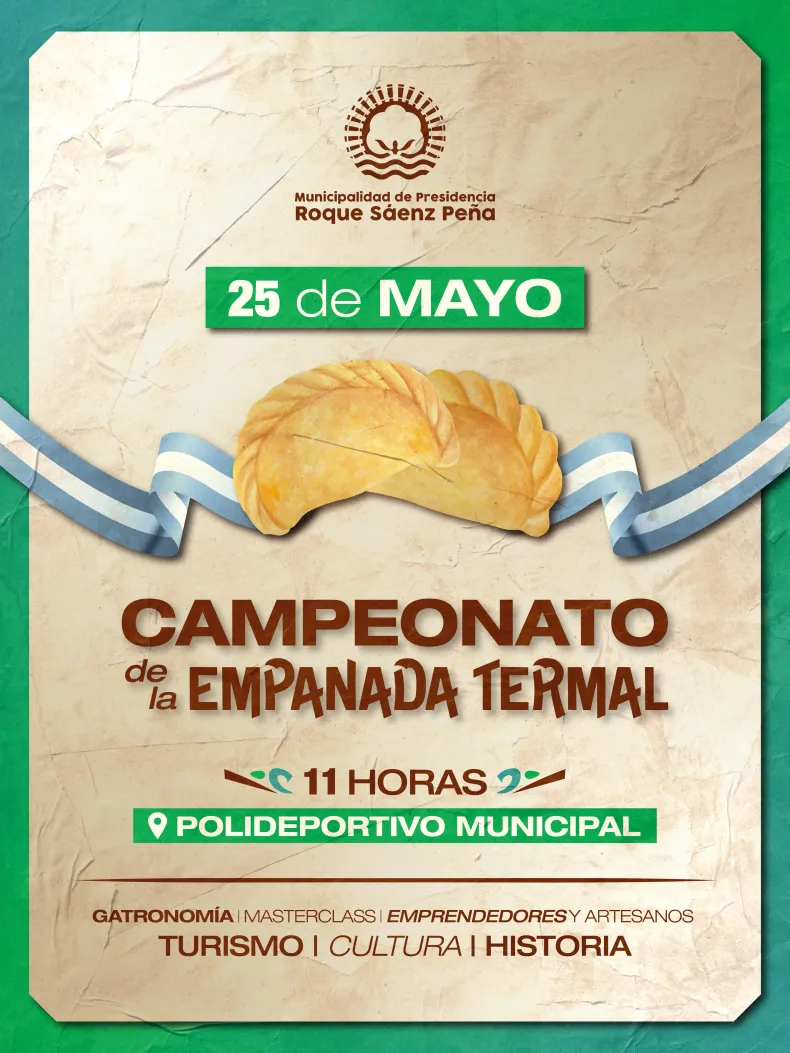 El próximo 25 de mayo desde las 11 horas en el Polideportivo Municipal, se realizará el "Campeonato de la Empanada Termal", que se llevará a cabo el en el marco de las celebraciones por la fecha patria.