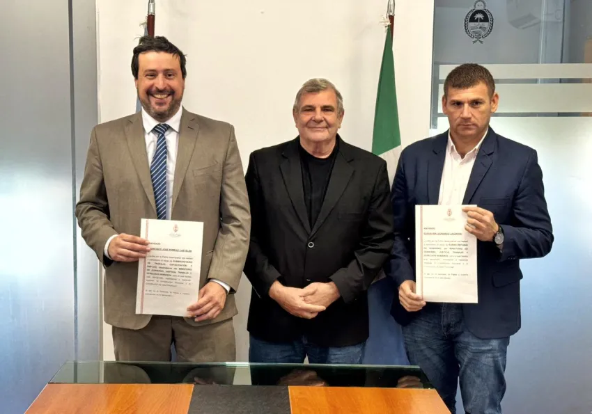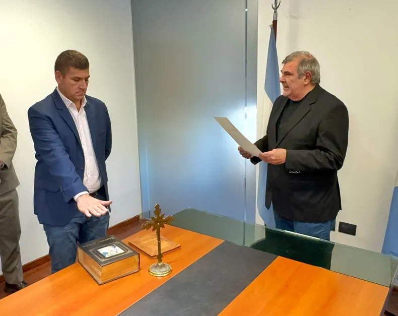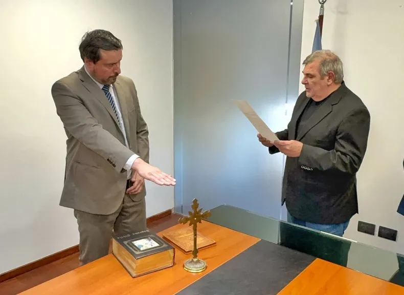 El ministro de Gobierno, Justicia, Trabajo y Derechos Humanos, Carim Peche, tomó juramento a Sebastián Lazzarini como nuevo subsecretario de Gobierno y a Francisco Romero Castelán, quien asumió al frente de la Subsecretaría de Trabajo, Capacitación y Empleo. El acto fue llevado a cabo en la tarde de este martes en Casa de Gobierno.