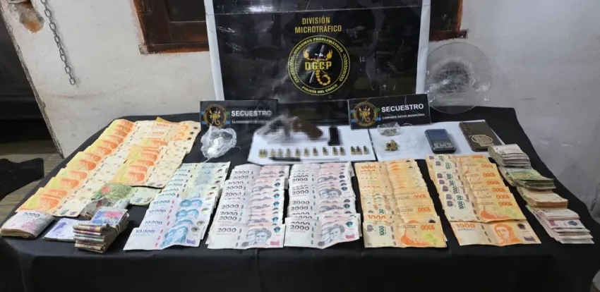 Durante las diligencias, los efectivos incautaron más de 30 gramos de cocaína fraccionada en distintos envoltorios, marihuana, una balanza digital, teléfonos celulares y una suma superior a los 530 mil pesos en efectivo.