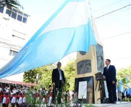 El actual intendente del municipio de Resistencia, Gustavo Martínez, encabezó el izamiento de banderas en el Mástil Mayor y en el de avenida Italia, en el marco de los actos oficiales por el 145° aniversario de Resistencia.