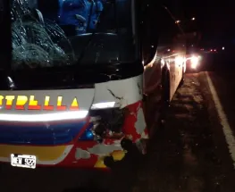 Producto del fuerte impacto solo se registró daños materiales en el colectivo. En lo que respecta a los pasajeros resultaron ilesos.