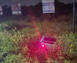 El conductor de una camioneta perdió el control por la calzada mojada y terminó en la banquina.