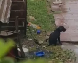 Video. Denuncian a un hombre por tener atado con un cable a un cachorro de 3 meses