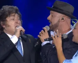 Milei subió al escenario, donde interpretó "Libre", la popular canción de Nino Bravo, y ahora cerrará su gira en el Muro de los Lamentos.
