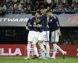 Fue por 5-0 con los goles de Julián Alvarez, Lionel Messi, Otamendi de penal, Chanda en contra y Barco sobre el final.