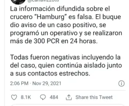 Vizzotti desmintió que se haya habilitado el ingreso sin control de pasajeros de un crucero