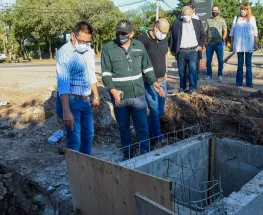 El Intendente recorrió las obras pluviales frente al Domo del Centenario