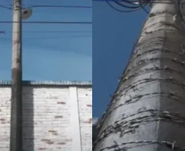Resistencia. Vecinos protegieron un poste de luz con grasa y alambre de púas para evitar el robo de cables