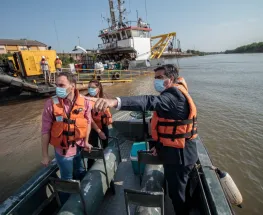 Capitanich supervisó el dragado de riacho Barranqueras: "Aspiramos a tener dos puertos competitivos"