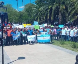 Gremios y movimientos sociales se concentraron en la Plaza San Martín para luego marchar por la calle principal de la ciudad termal.