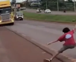 Video. Imprudencia total: un joven se lanzó frente a un camión por un reto viral