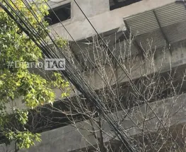Cayó parte de la mampostería de un edificio en construcción y rompió un auto estacionado