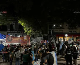 La manifestación se realizó en inmediaciones de la plaza 25 de Mayo, con presencia policial para que los manifestantes no corten el tránsito.